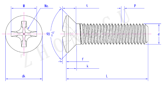 ANSIASME B18.6.3O十字半沉頭機螺釘