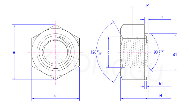 標準:DIN929 材質(zhì):碳鋼,不銹鋼(可定制)