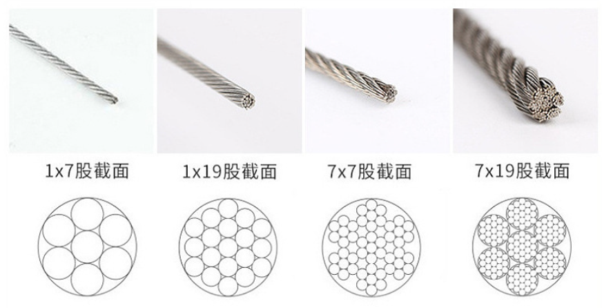 1*7表示鋼絲繩有1股,每股里面有7根細(xì)絲,鋼絲繩是由7根絲加工而成
